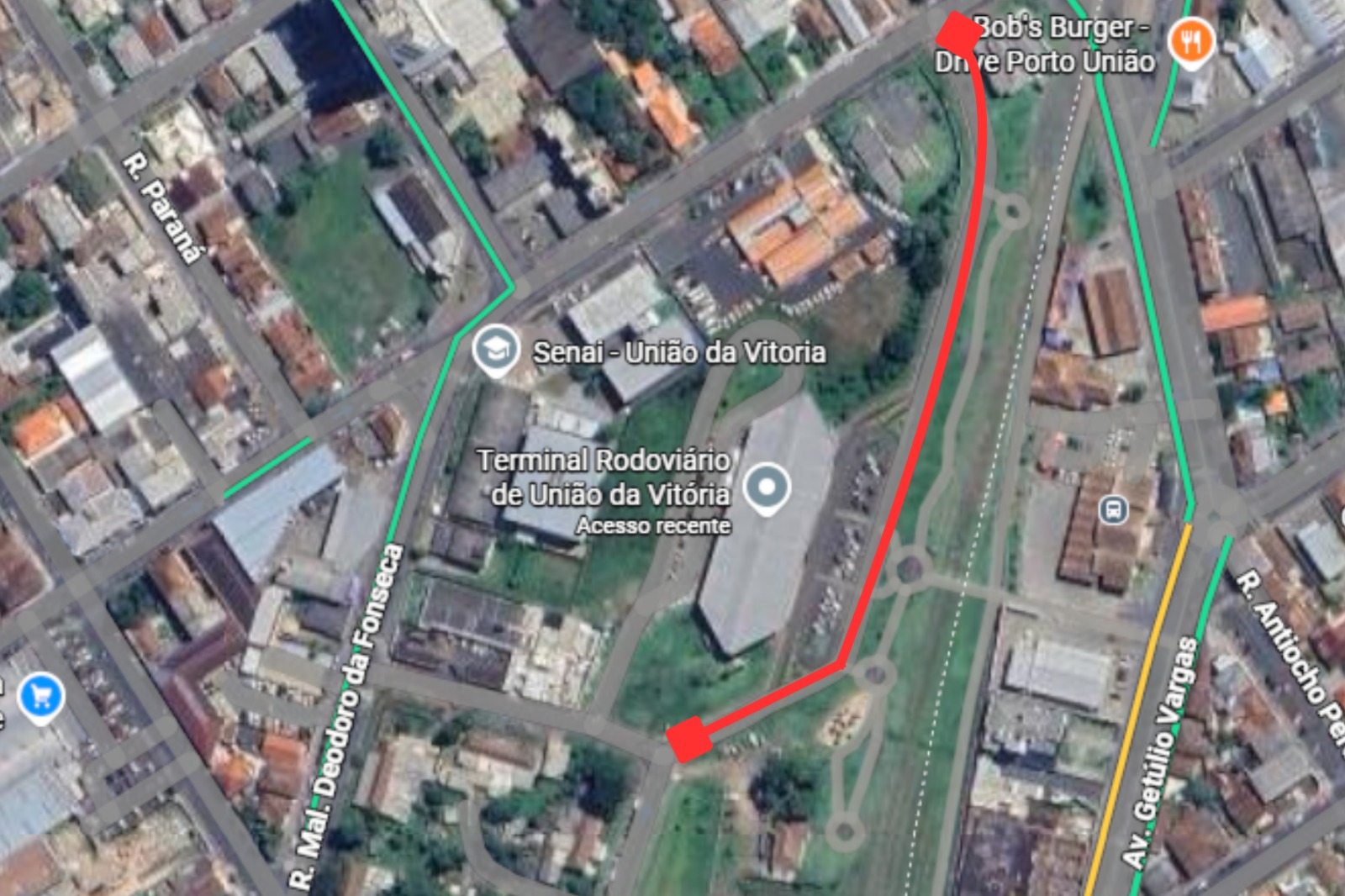 Durante o período de bloqueio, os embarques e desembarques de ônibus e veículos devem ser feitos pela Rua Demétrio Sokolowski, com entrada pela Rua Marechal Deodoro da Fonseca, nas proximidades da Delegacia da Polícia Civil.